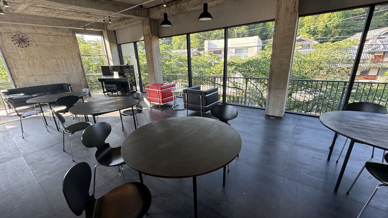 外にある滝が良いですね。見てるだけで涼しい気分になれます。